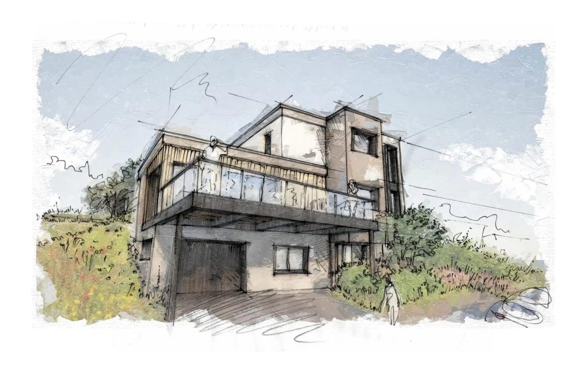 Une première esquisse sur l’organisation des espaces, des volumes, les lumières, le choix des matériaux, les aménagements intérieurs et extérieurs.